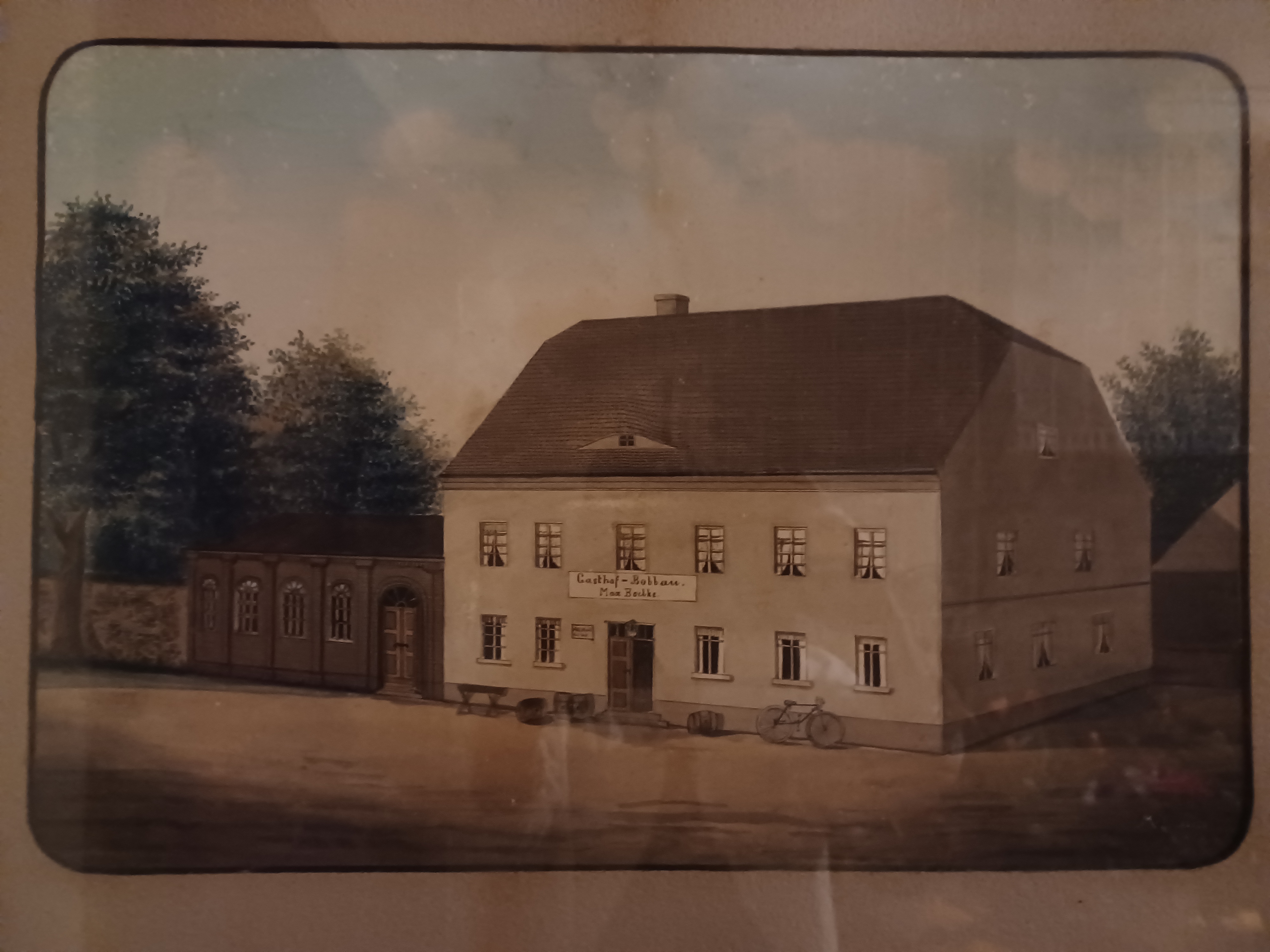 Nach mehreren Besitzerwechseln kaufte mein Urgroßvater, Max Boelke 1899 den Gasthof und eröffnete ihn 1900. Mit seiner Frau Gertrud und den beiden Kindern Johannes, geb. 1897 und Gertrud, geb. 1899 ist die Familie von Dessau nach Bobbau gezogen.