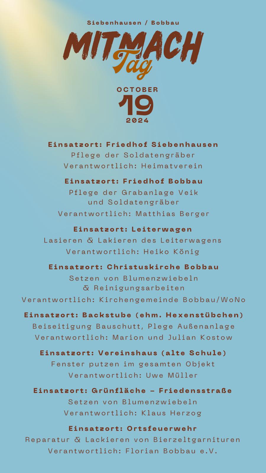 Bobbauer Frühlingserwachen "Von Nachbar zu Nachbar" und anschließend Bürgerbrunch auf dem Bobbauer Sportpltz.