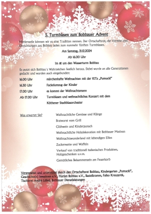 Wasserturm Bobbau Turmblasen mit dem Posaunenorchester Raguhn-Jeßnitz mit Glühwein und Bratwurst